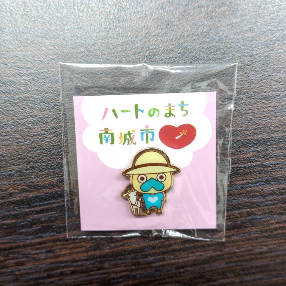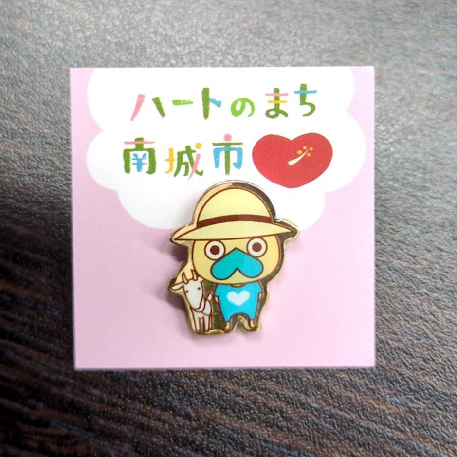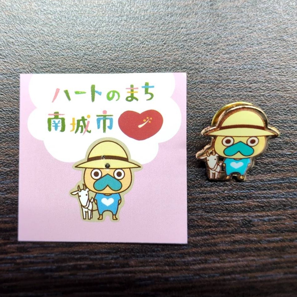 ご当地キャラクターの販売用のピンバッジ。